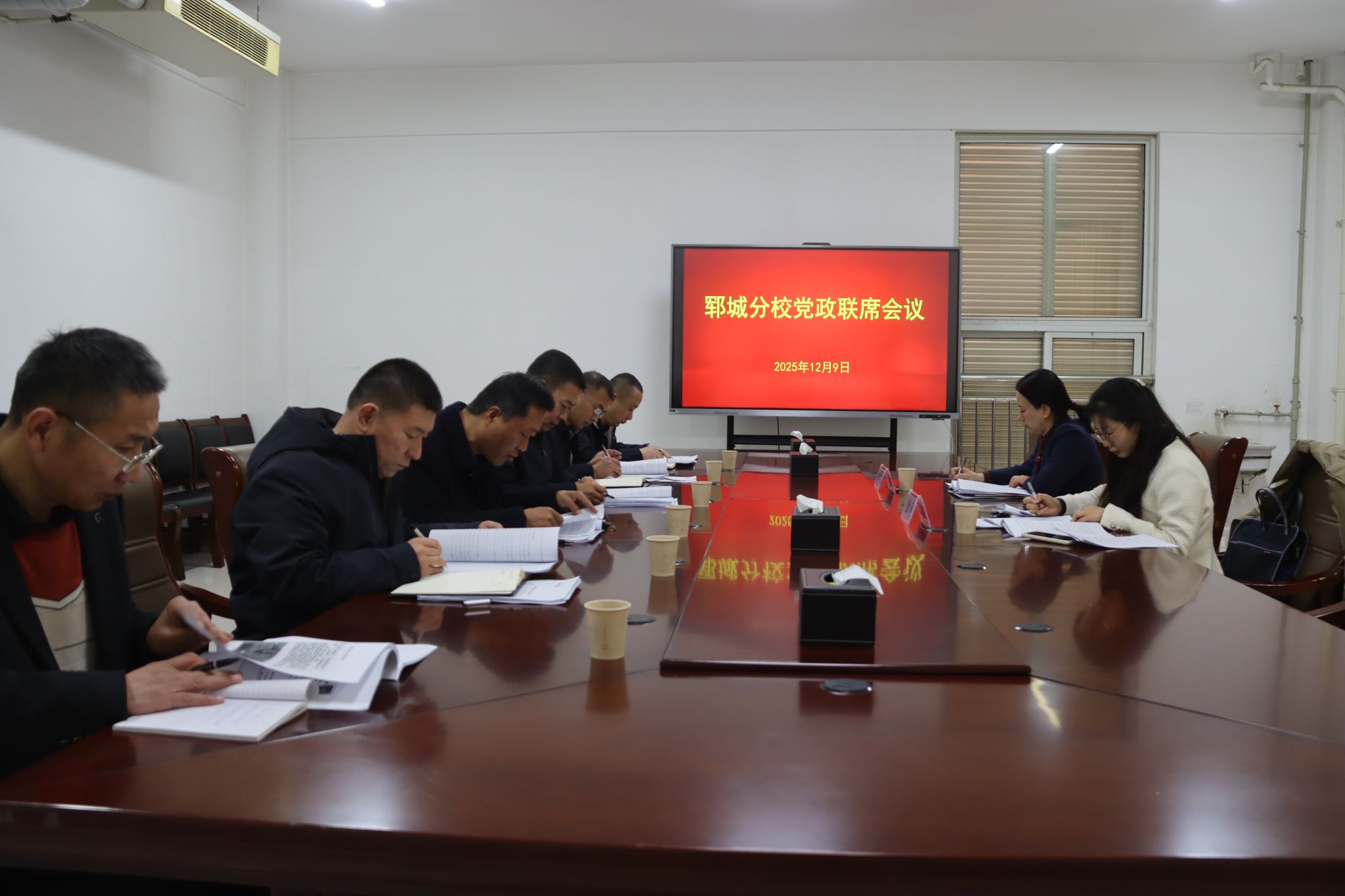 12月9日,郓城分校召开党委会、党政联席会和党委理论学习中心组集中学习会议。学校党委委员、副校长曲相艳及纪委、监察专员办综合处副处长康丽列席旁听。分校领导班子成员、党委理论学习中心组其他成员参加相关会议,分校相关人员列席会议。会议由分校党委书记许腾主持。