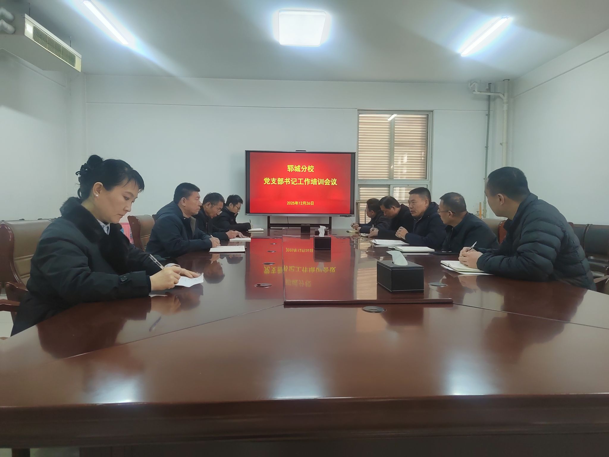 12月26日,郓城分校召开党支部书记培训会议,党委班子成员、各支部书记参会。分校党委书记许腾作专题培训。