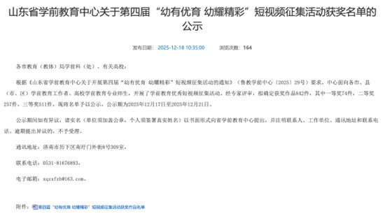 近日,山东省学前教育中心公布第四届“幼有优育 幼耀精彩”短视频征集活动获奖名单,郓城分校在此次省级赛事中表现亮眼,斩获两项三等奖,充分彰显了分校学前教育专业的育人成效与师生的专业素养。